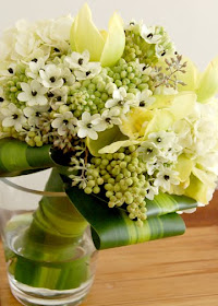 These beautiful bouquet holders were designed by Karen Hsu of Grandiflora in Berkeley, CA. They have been a popular idea and Karen has fielded many questions about what types of flowers and leaves comprise the bouquets in this flirty idea. Be sure to check out the comments at the bottom of the page if you're wondering what components she used to create the two pictured here and more. Click Here to View the Details.